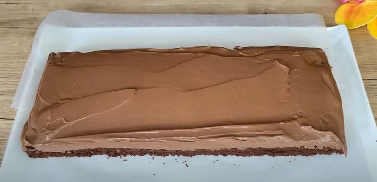 Переверніть корж на інший аркуш пергаменту, зніміть той, на якому випікався, і залиште охолоджуватися.