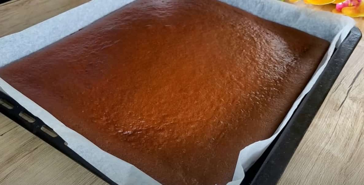 Корж випікався у формі розміром 32 × 39 см.