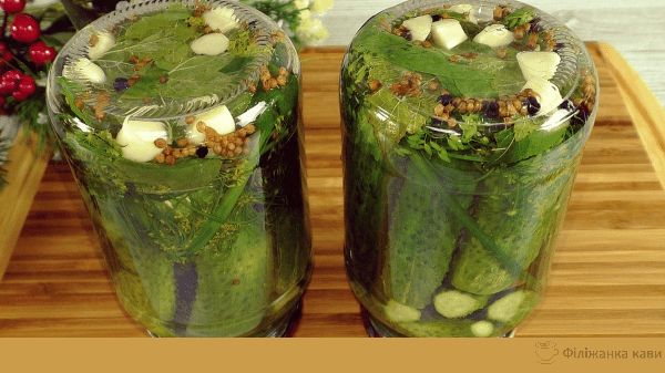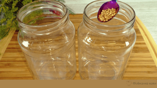 - Зерна коріандру або гірчиці 0.5 ч. л. (на 1 літрову банку)