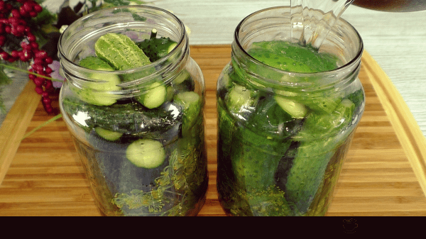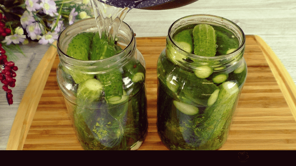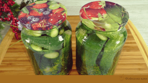 Даю закипіти і заливаю маринадом банки з огірками, добре закручую.