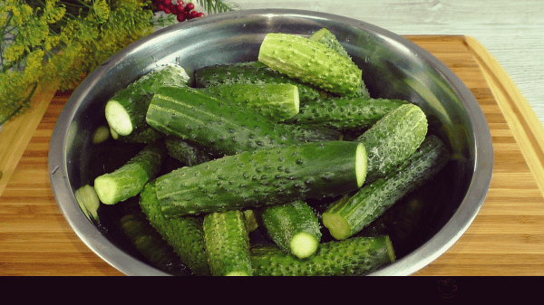 Огірки, якщо потрібно, замочуємо в холодній воді, потім видаляємо непотрібне.