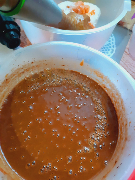 700 гр гарбуза (запекла в мікрохвильовці), 25 гр. розведеного желатину, одна розтоплена шоколадка.