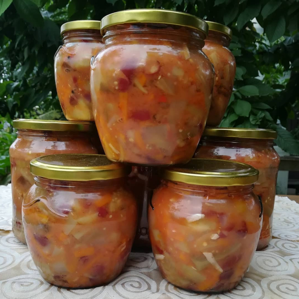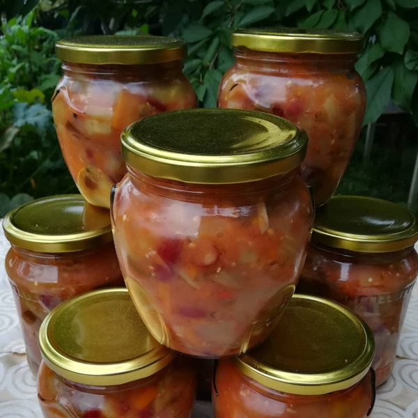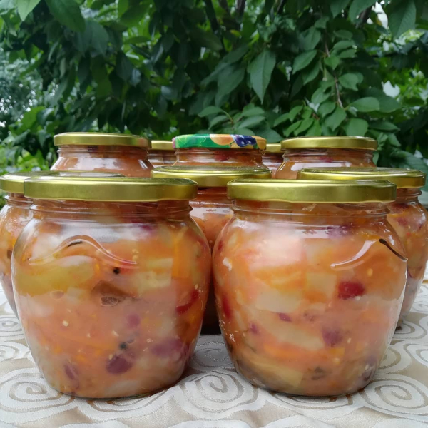Кілька років тому знайшла в інтернеті рецепт закуски з овочів із квасолею. Дещо його видозмінила, щось прибрала, щось додала, зробила на пробу кілька баночок. Взимку ця закуска пішла на “ура”. Тепер щороку роблю і багато. 🤗