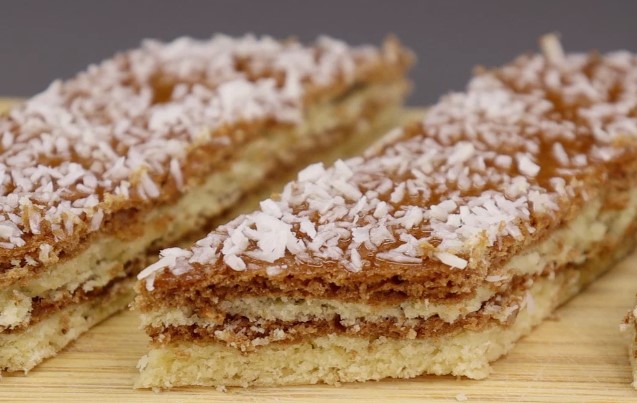 - Ріжемо печиво порційними шматочками та виймаємо з форми.