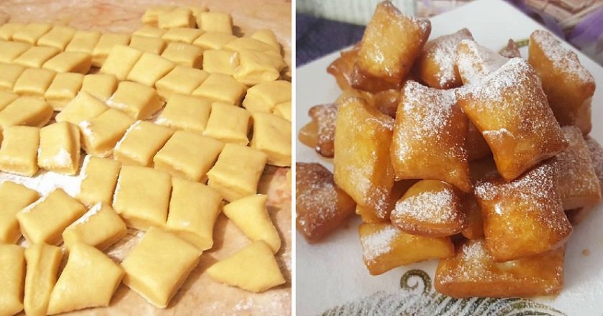 - Налийте рослинне масло на сковороду, щоб воно покривало її на пару міліметрів, і смажте квадратики з обох боків до золотистого кольору. Потім присипте цукровою пудрою. Готово!