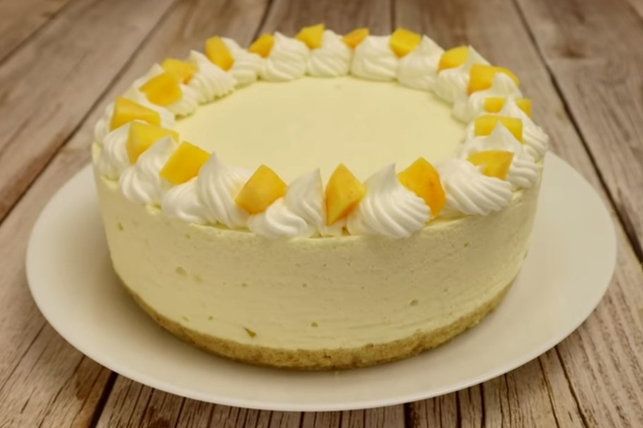 Гарний, ароматний, ніжний десерт готується швидко та просто. Для торта потрібні вершки, вибирайте жирні, щоб десерт вийшов таким, як потрібно. А персики можна замінити консервованими ананасами чи іншими фруктами.