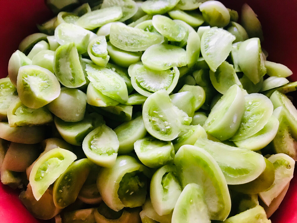 Цю закуску готують тільки з абсолютно зелених, міцних плодів. З бурих помідорів ця закуска матиме зовсім інший смак, навіть щільність у готових помідорів буде інша. Для заготівлі підходять навіть дрібні і пошкоджені плоди, які не можна використовувати в заготівлях цілими.