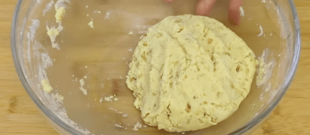 - Потім просіюємо борошно пшеничне і всипаємо подрібнені волоські горіхи. Добре перемішуємо і руками замішуємо тісто. Відправляємо в холодильник на годину.