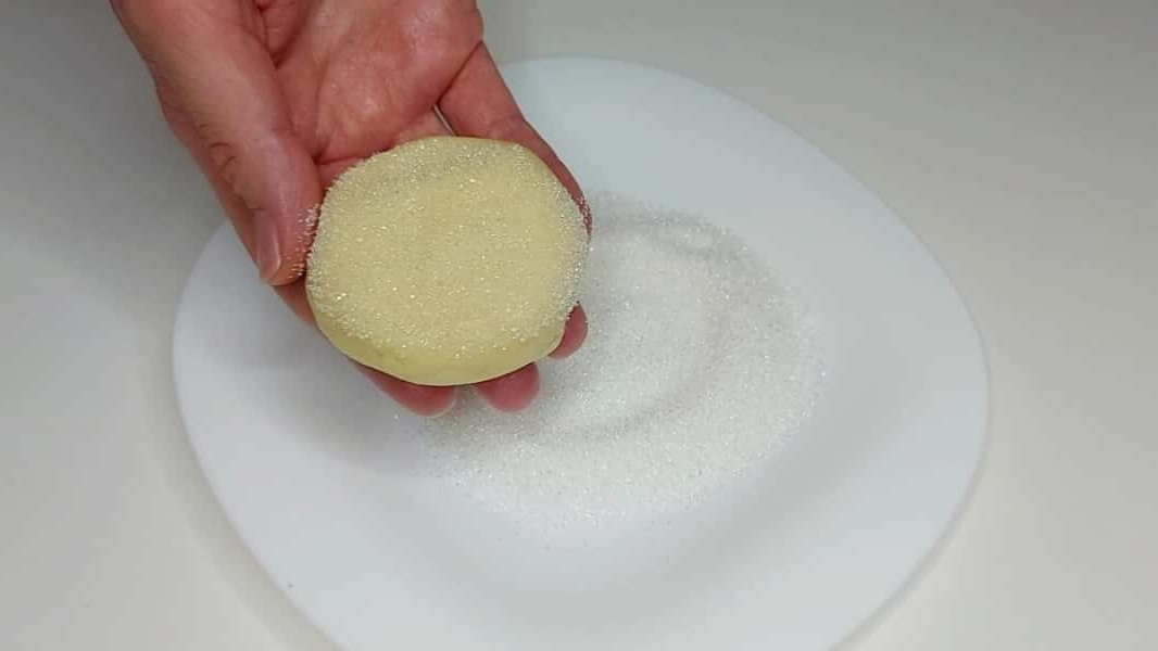 6. Обмокнути верхньою стороною у цукор.