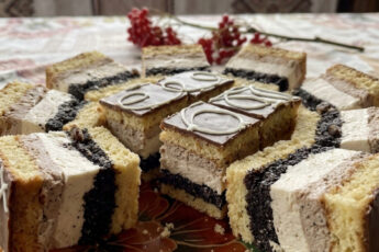 - Обрізаємо нерівні краї та розрізаємо навпіл. Краї подрібнюємо у крихту.