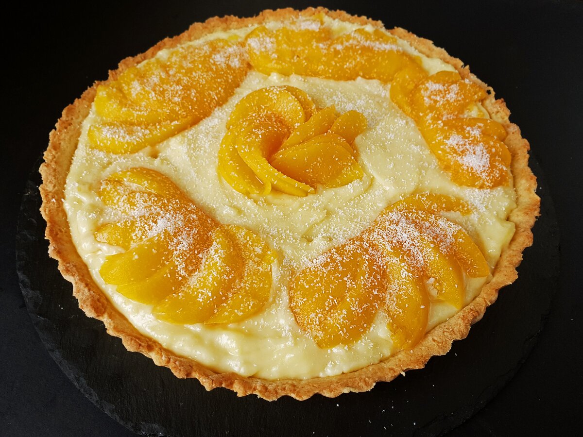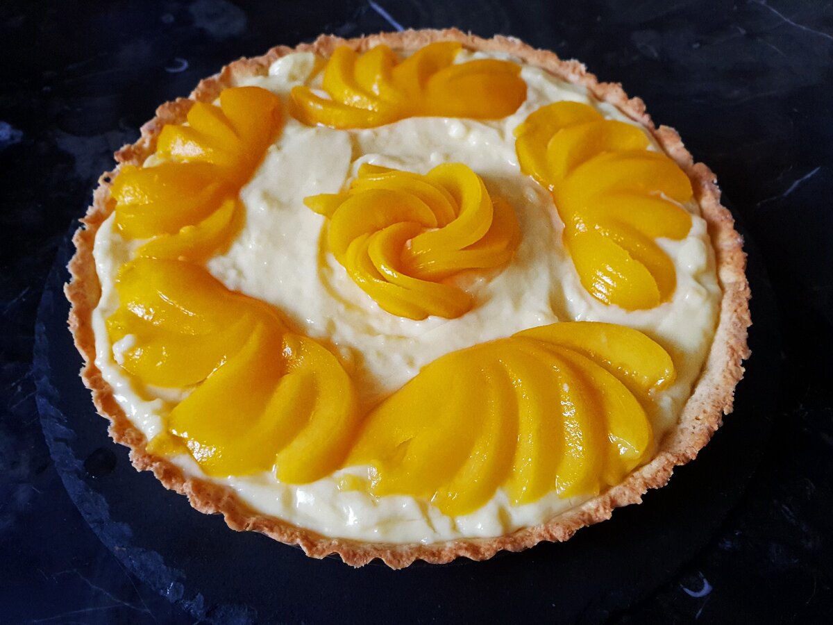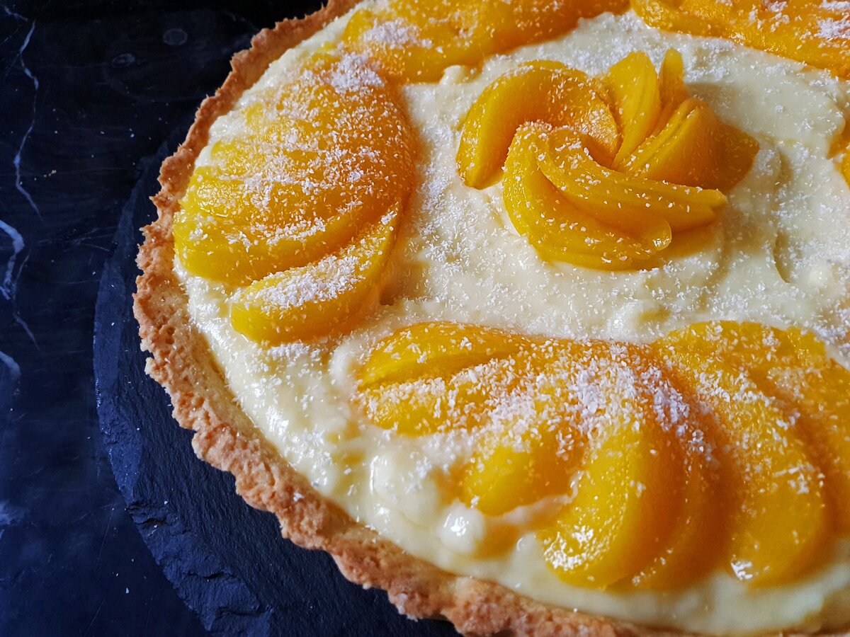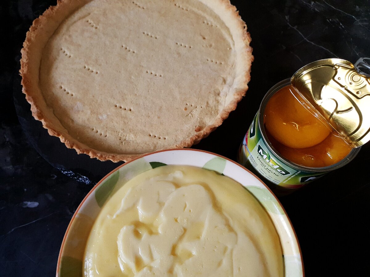 Пісочний пиріг із заварним кремом і фруктами: шикарний рецепт найсмачнішої і дуже простої в приготуванні випічки. Ділюсь покроковим рецептом приготування пирога на основі пісочного тіста з заварним кремом і консервованими персиками.