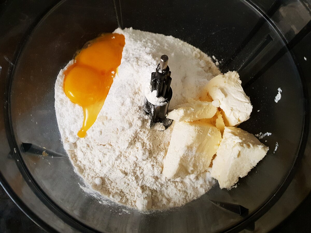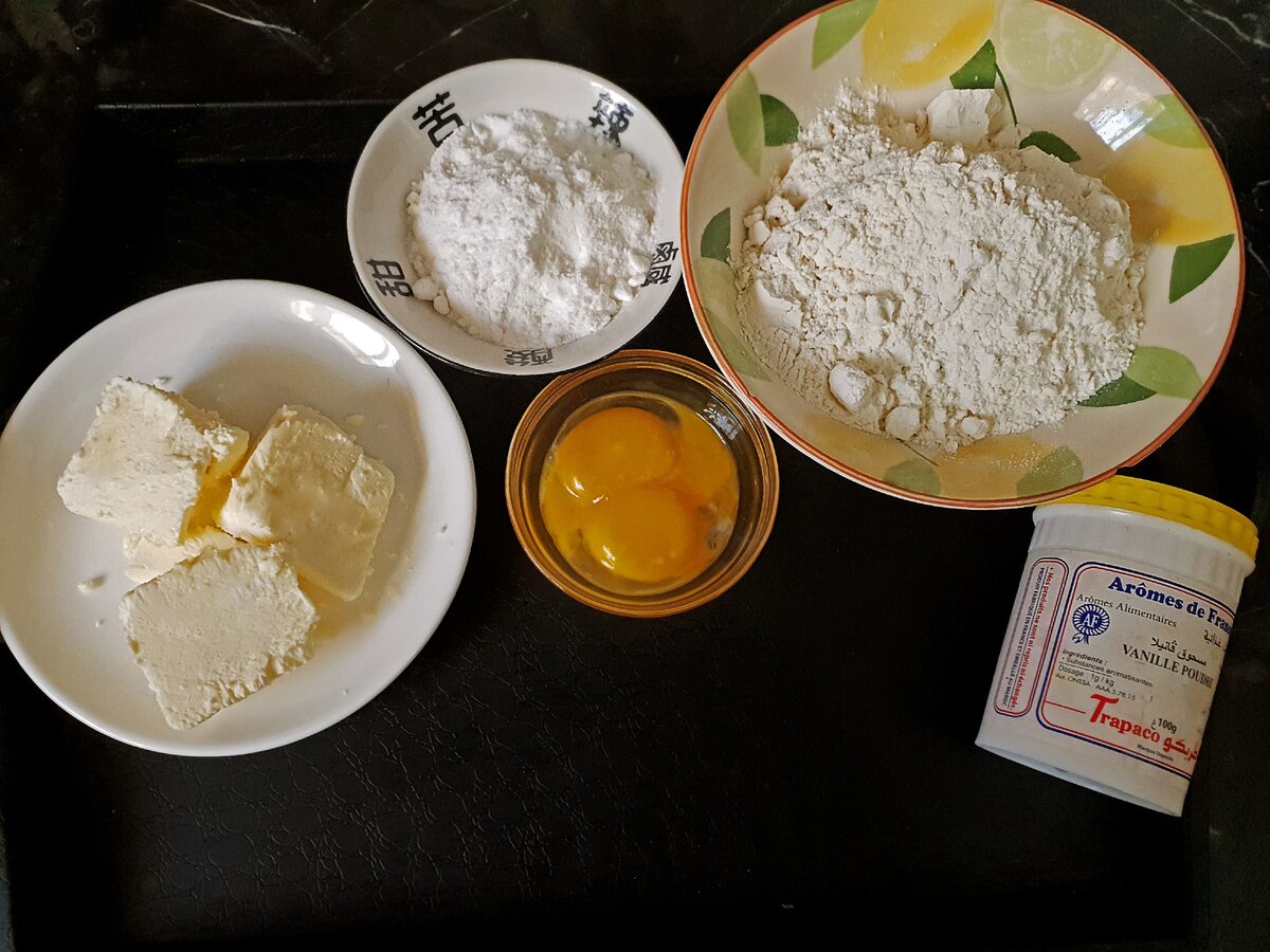 1. Спочатку необхідно приготувати тісто. Для цього змішайте борошно, пудру і ванілін. Перетріть їх з маслом і потім вмішайте жовтки. Замісити однорідне тісто.