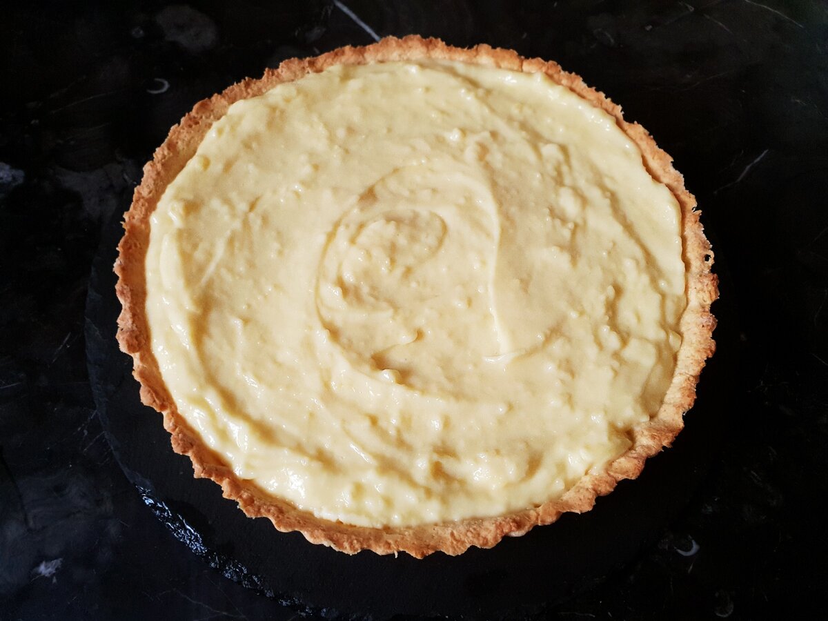 10. Тепер акуратно викладіть крем на пісочну основу.