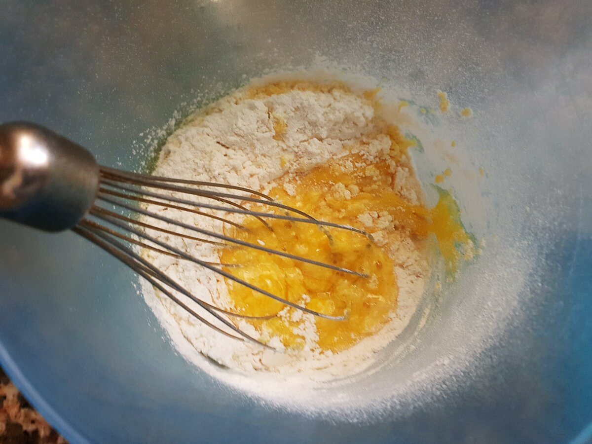3. Поки тісто в холодильнику потрібно приготувати крем. Для цього збийте жовтки з борошном.