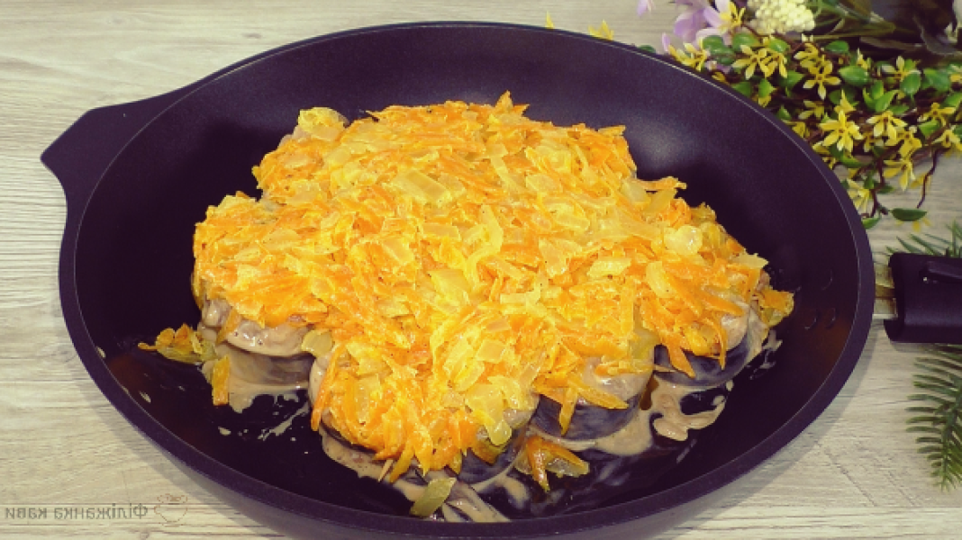 Зверху на рибні заготовки викладаю овочі зі сметаною.