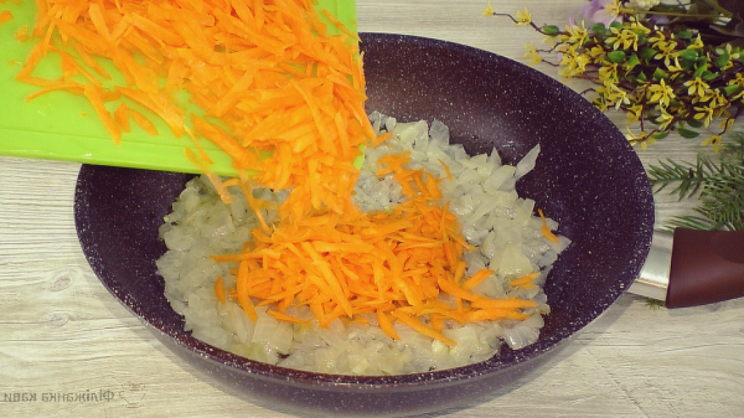 Додаю моркву і обсмажую овочі ще приблизно 2 хвилини.