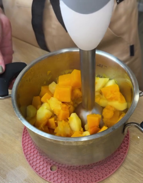 ▫️Гарбуз та яблука очищаємо, нарізаємо на кубики.
