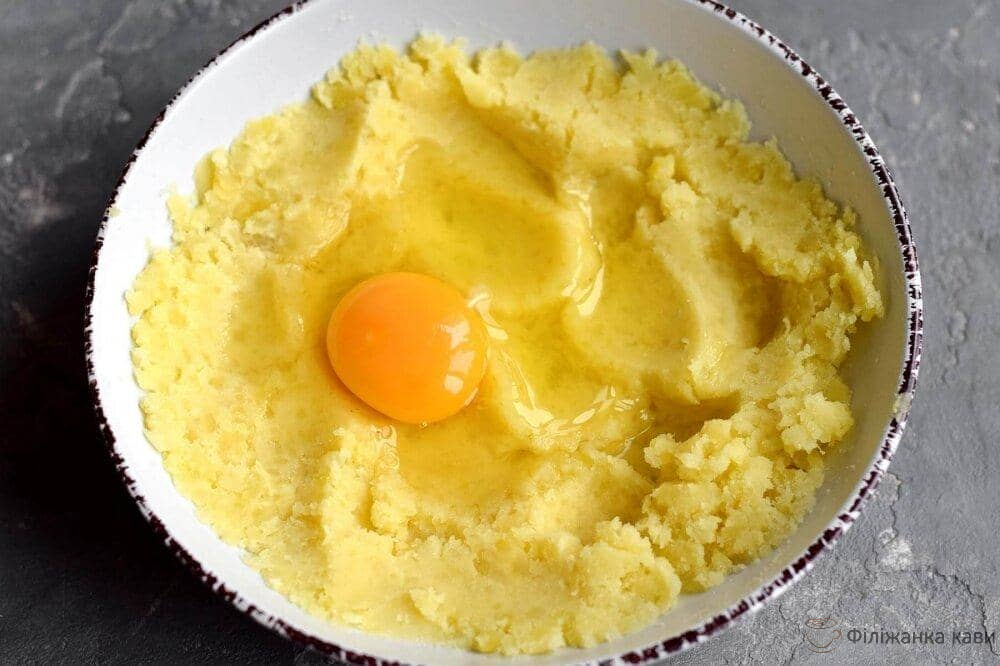 У картопляну масу вбийте одне яйце, при необхідності додайте сіль.
