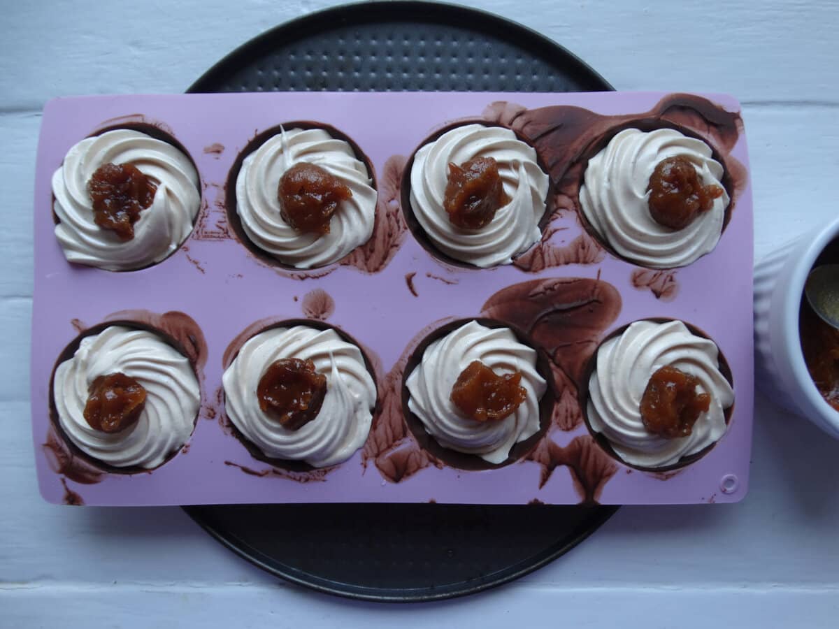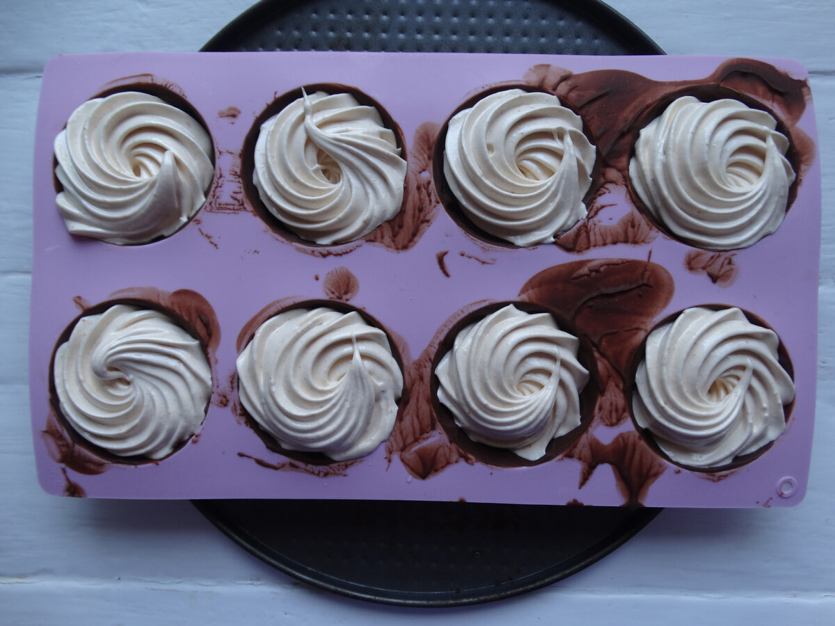 Відправляємо форму з тістечками в морозилку на годину-дві. Після чого дістаємо форму і звільняємо бонжурчики.