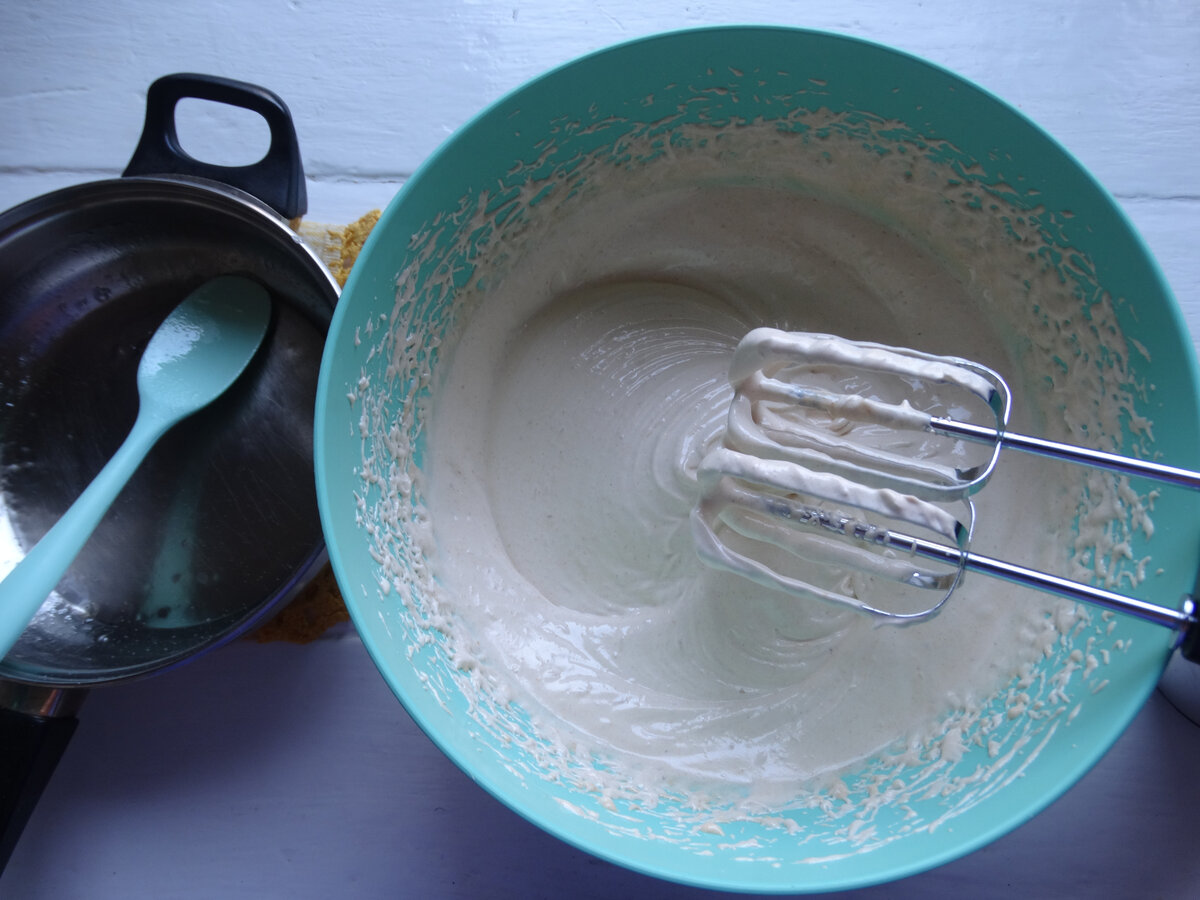 Збиваємо зефірну основу тістечка до щільної-щільної піни.