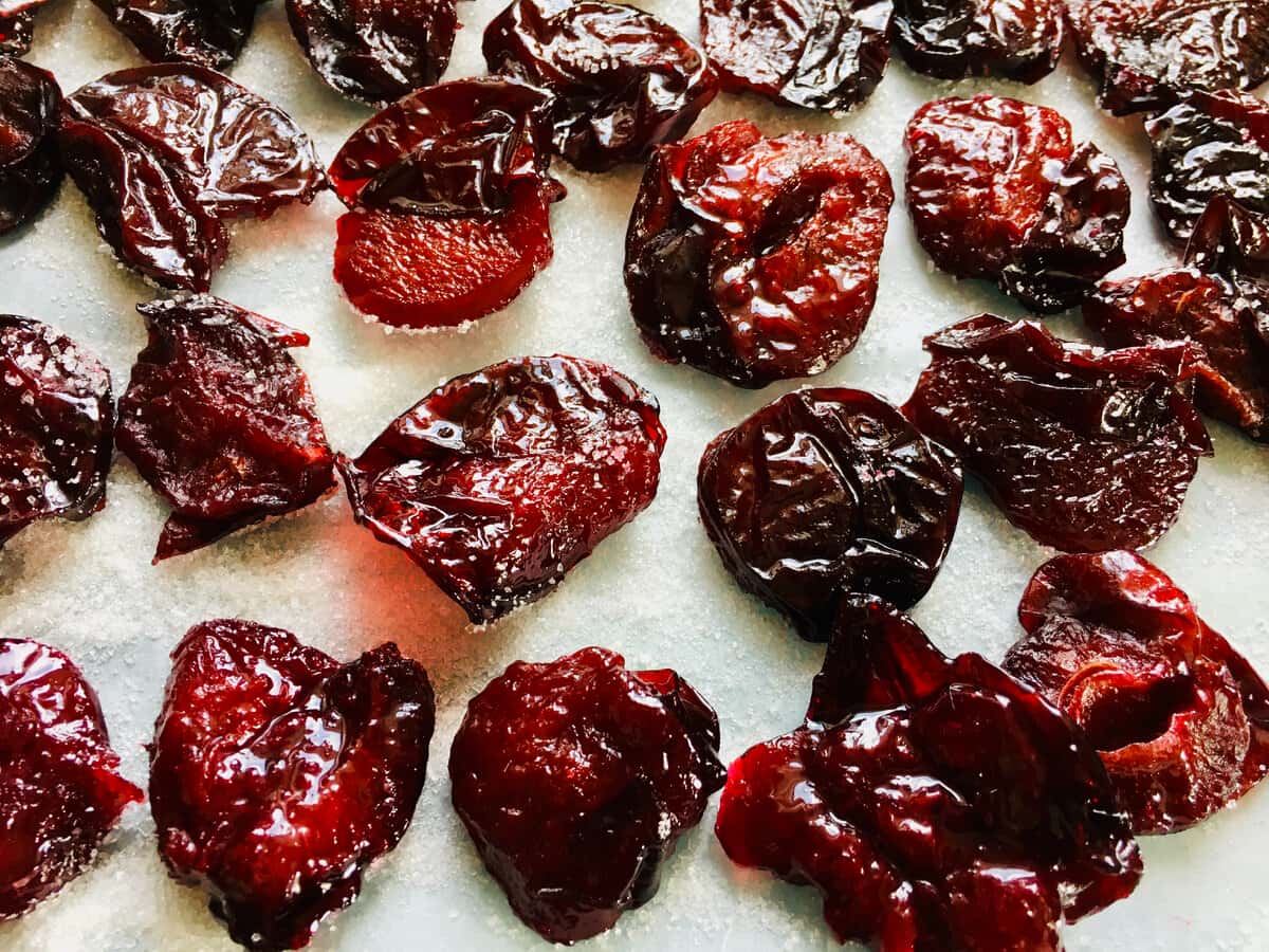 Я їх перевертаю 1-2 рази на день для рівномірного в’ялення. Це дуже смачні, натуральні ласощі з малою кількістю цукру, прекрасно зберігається в кімнатних умовах. Його обожнюють діти і дорослі. До келиху вина або ігристого кращої закуски просто не знайти.