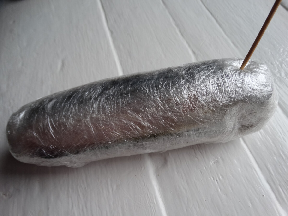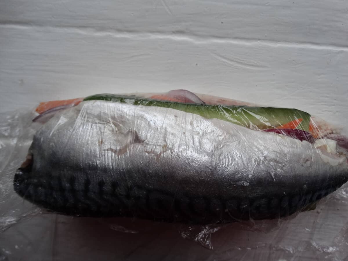 Намотуємо на рибку шарів 10 плівки. Дуже важливо, щоб все було замотано щільно-щільно, і міцно закрито з усіх боків ( в тому числі і з боків ).