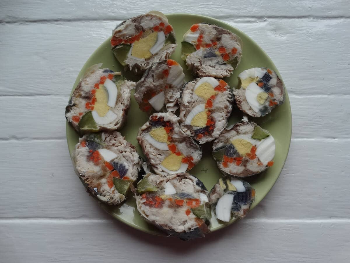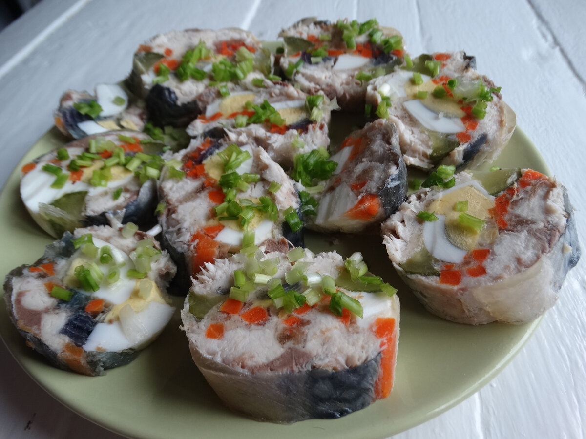 Що найприємніше в цій страві, так це те, що основними інгредієнтами тут є тільки сама скумбрія і желатин ( звичайно, ще й спеції ). В іншому – повна свобода. Зазвичай вибираються додаткові продукти, які підходять до риби за смаком. Але до того ж, вони повинні бути ще й яскравими. Наприклад, помаранчеві гарбуз і / або морква, зелені овочі, маслини або зелень, білі яйця, а іноді і сир, це вже – справа смаку. Тоді ми отримаємо ідеальну і до смаку, і за зовнішнім виглядом страву.
