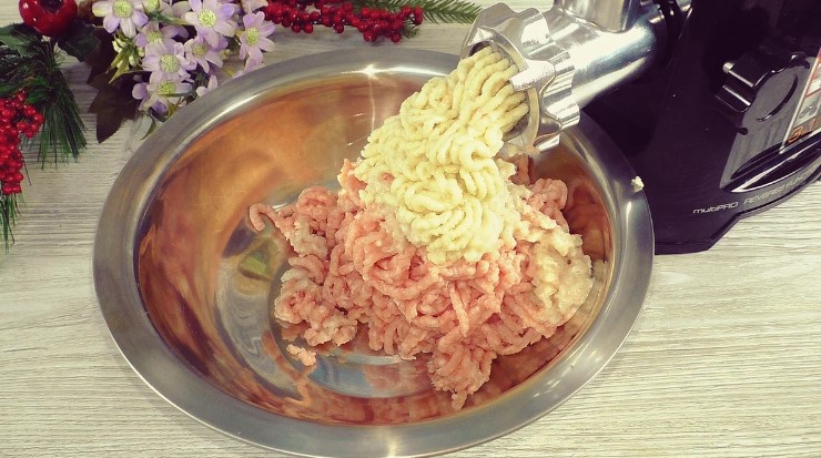 Цибулю також пропускаю через м’ясорубку.