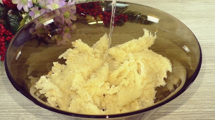 Хліб добре віджати від води і подрібнити.