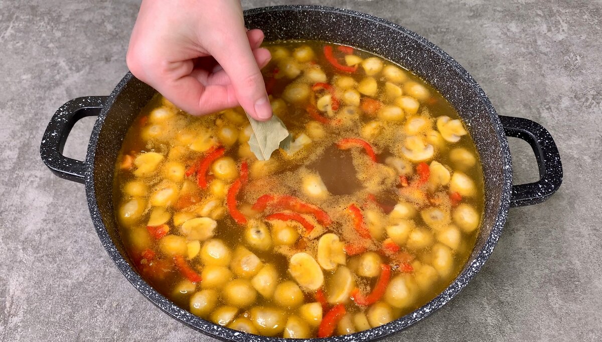 6. Закладаємо лавровий лист, варимо 3-4 хвилини і знімаємо з вогню.