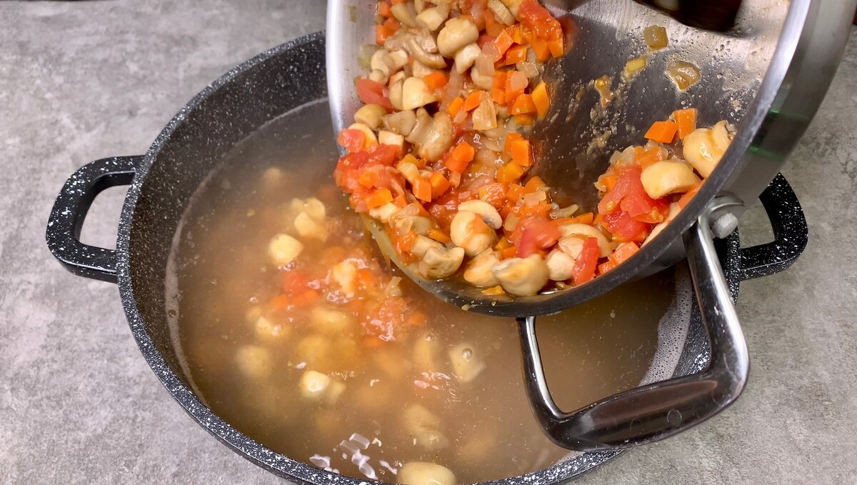 Для таких супів я завжди тримаю в морозилці заморожений овочевий бульйон. Але якщо бульйону немає, можна приготувати і на воді.