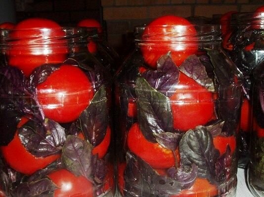 Помідори виходять з тонким ароматом базиліка і дуже гармонійним смаком. Якщо у Вас є оцет на базиліці, то його використання при заготівлі зробить смак помідорів ще більш базиліковим.