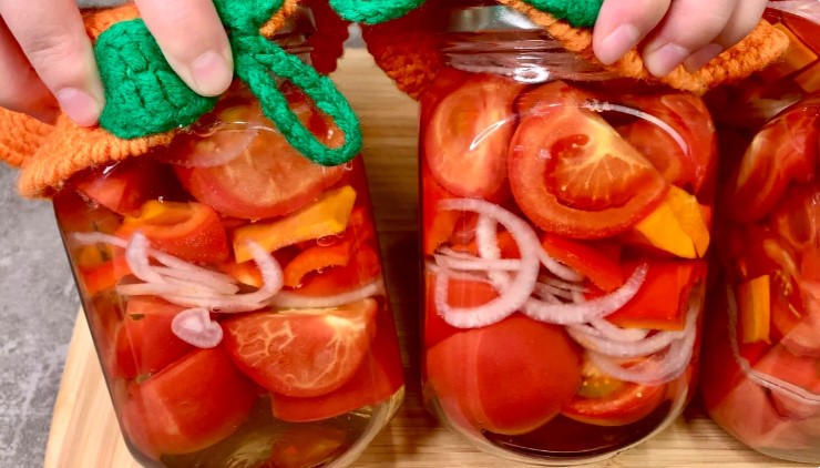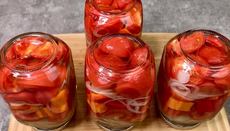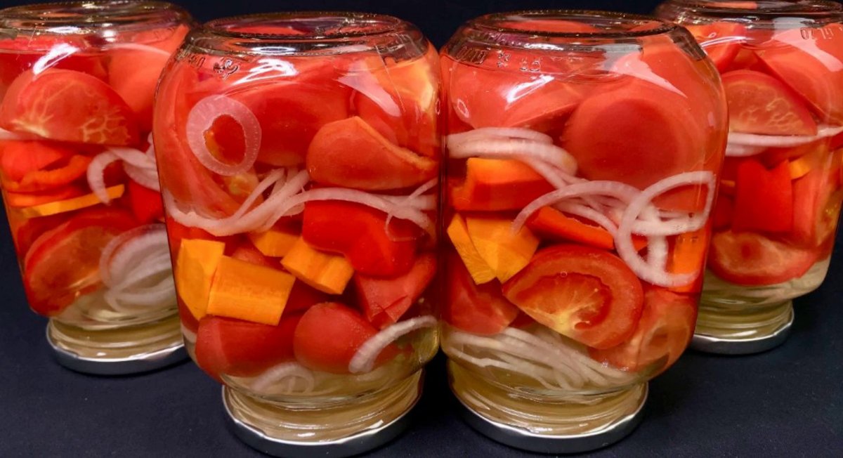 Закриваю на зиму “заливні” помідори з овочами! Виходять неймовірно смачні, кисло-солодкі і форму тримають чудово!