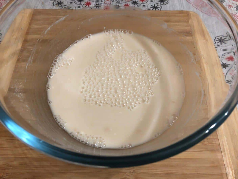 У теплій воді розчиняємо дріжджі, додаємо цукор і просіюємо 3 ст.л. борошна. Добре перемішуємо.