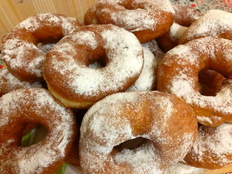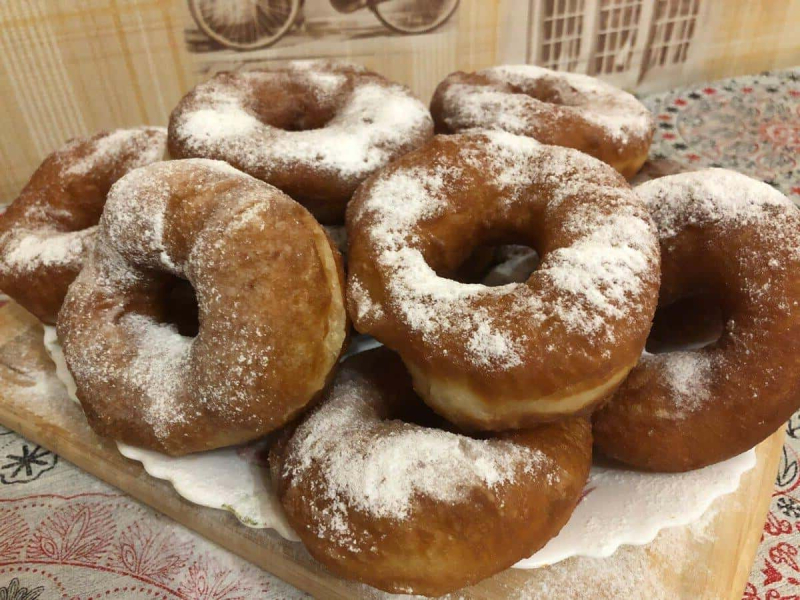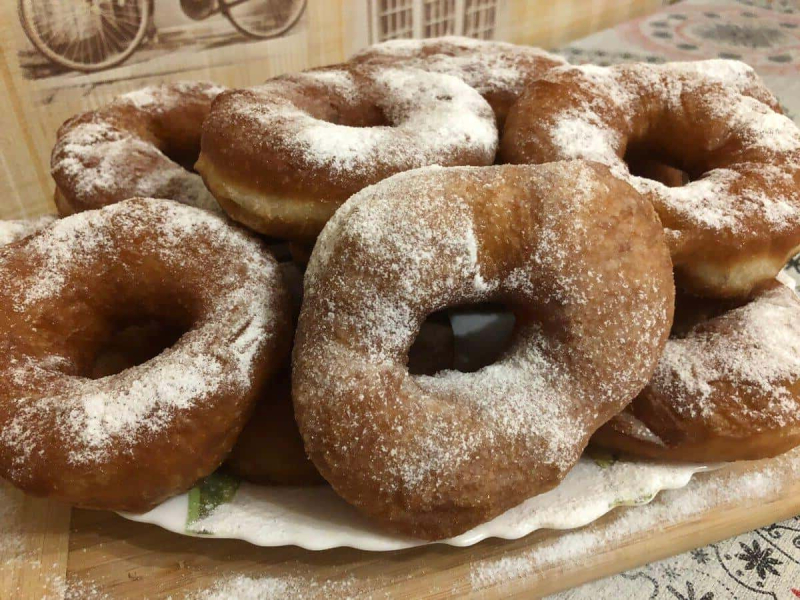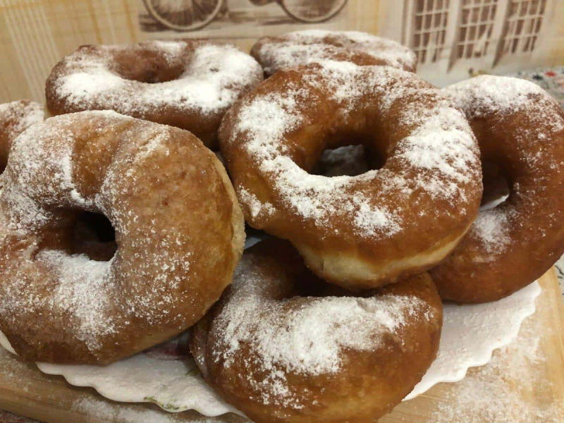 Охолонувші пончики посипаємо цукровою пудрою!