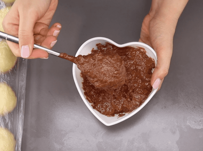 10. Накриваємо заготовки пакетом, щоб не завітрювалися і приступаємо до формування. Як начинка сьогодні у мене буде шоколадний пудинг. Я готувала його згідно з інструкцією на упаковці. Пудингу даємо повністю охолонути.