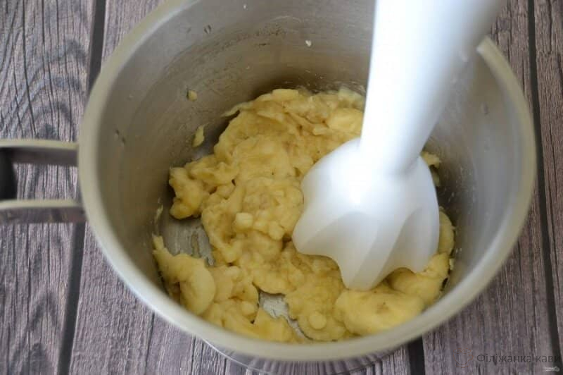 Потім блендером подрібніть зварену суміш. Протріть масу через сито і зважте її. Має вийти близько 240 г бананово-яблучного пюре.