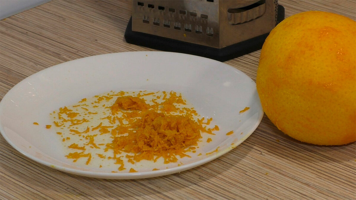 Знімаємо цедру за допомогою спеціального ножа або дрібної терки. Знімаємо тільки верхній шар ( помаранчевий ).