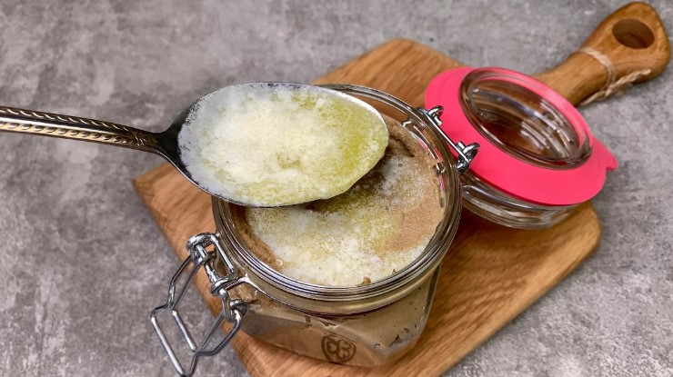 7. Для зберігання я зверху заливаю трохи розтопленого вершкового масла.