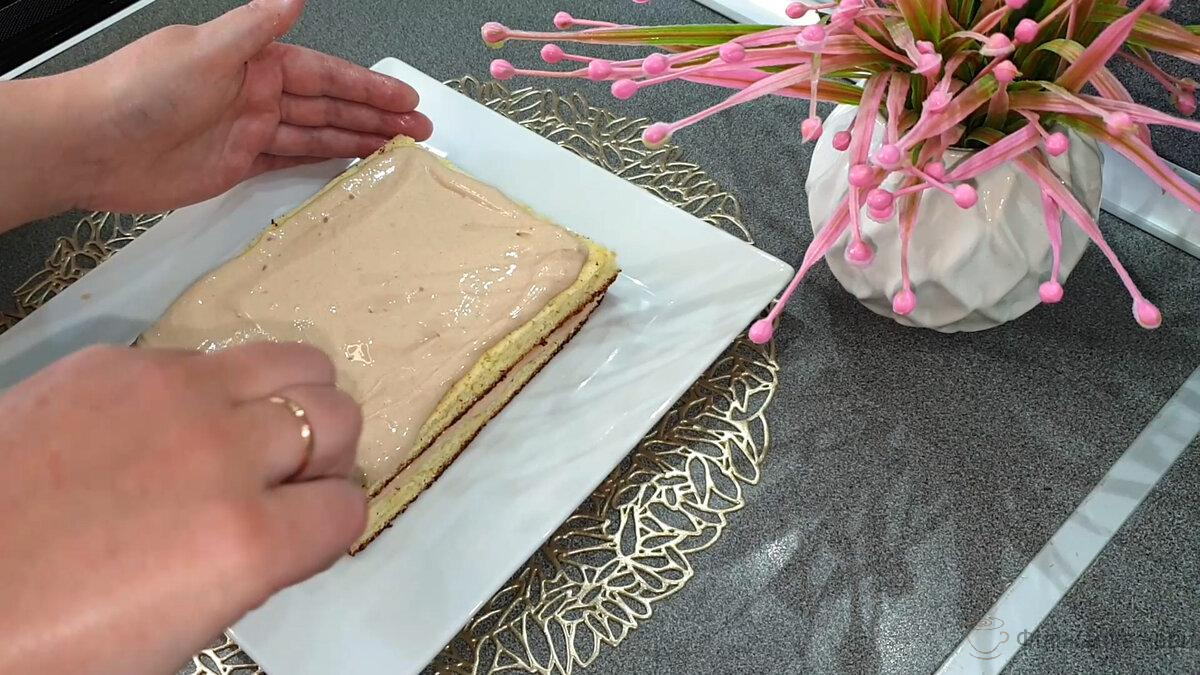 Охолонувші коржі змащую кремом, викладаючи один на одного