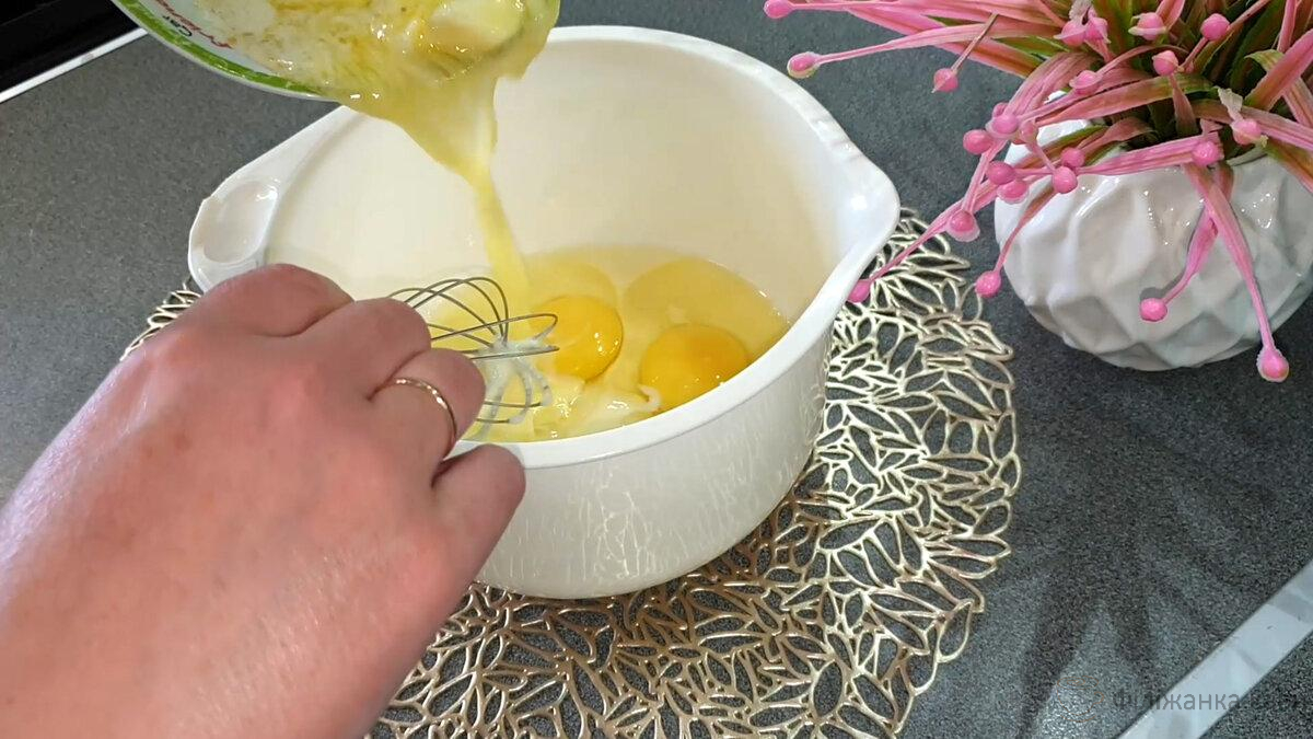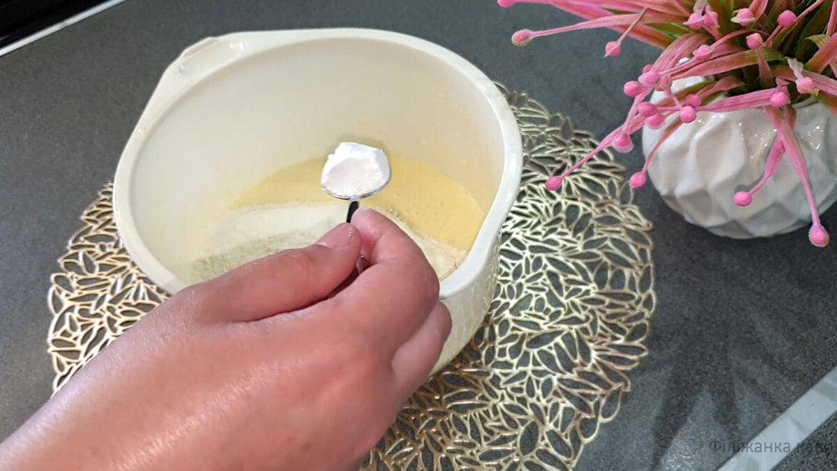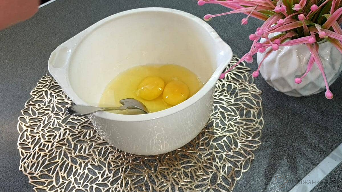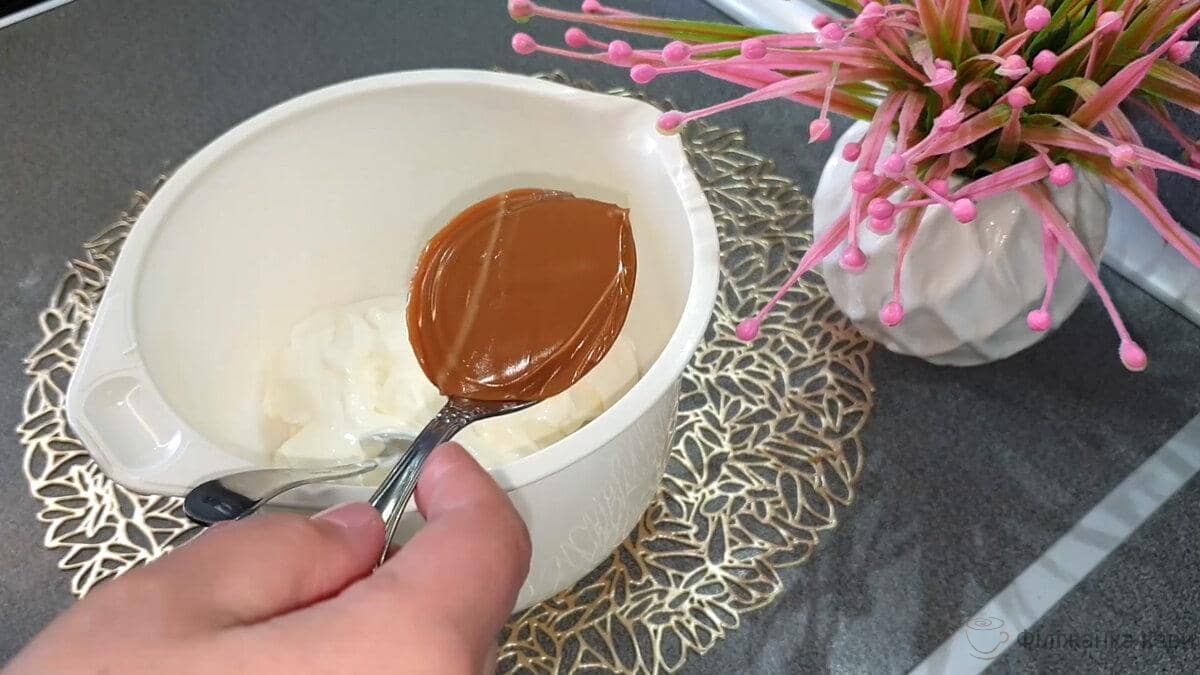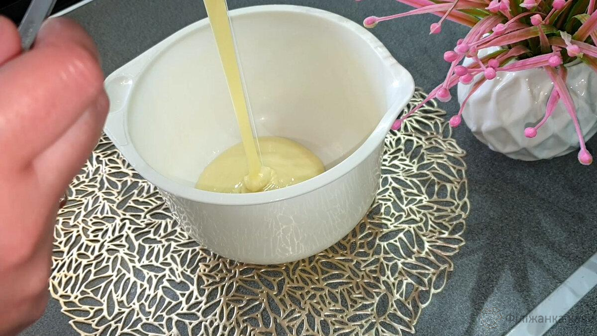 Готуємо тісто. В окремій ємності змішуємо згущене молоко 300 грам.