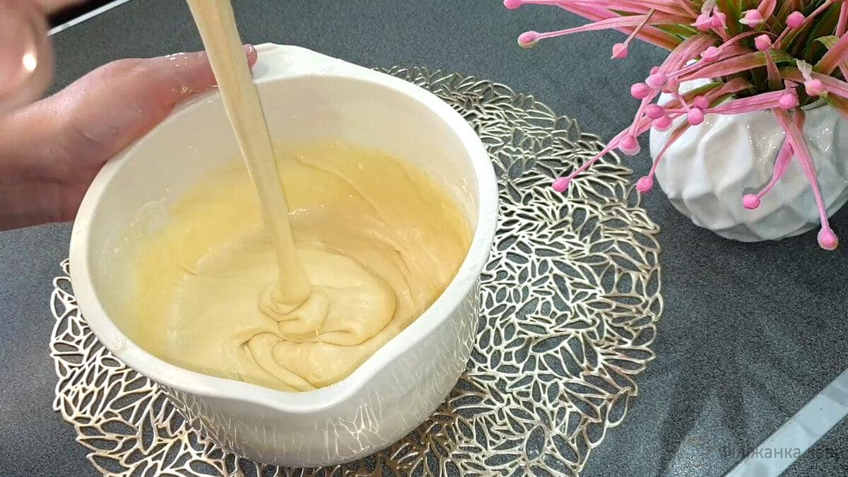 Орієнтуйтеся на консистенцію тіста, воно повинно струмувати “стрічкою”, досить рідке виходить.