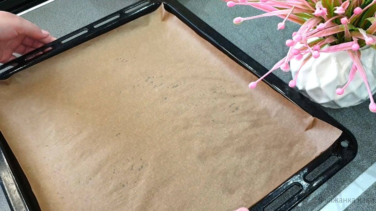 Деко застилаю пергаментним папером. Найкраще силіконізований брати, щоб до нього нічого не прилипло.