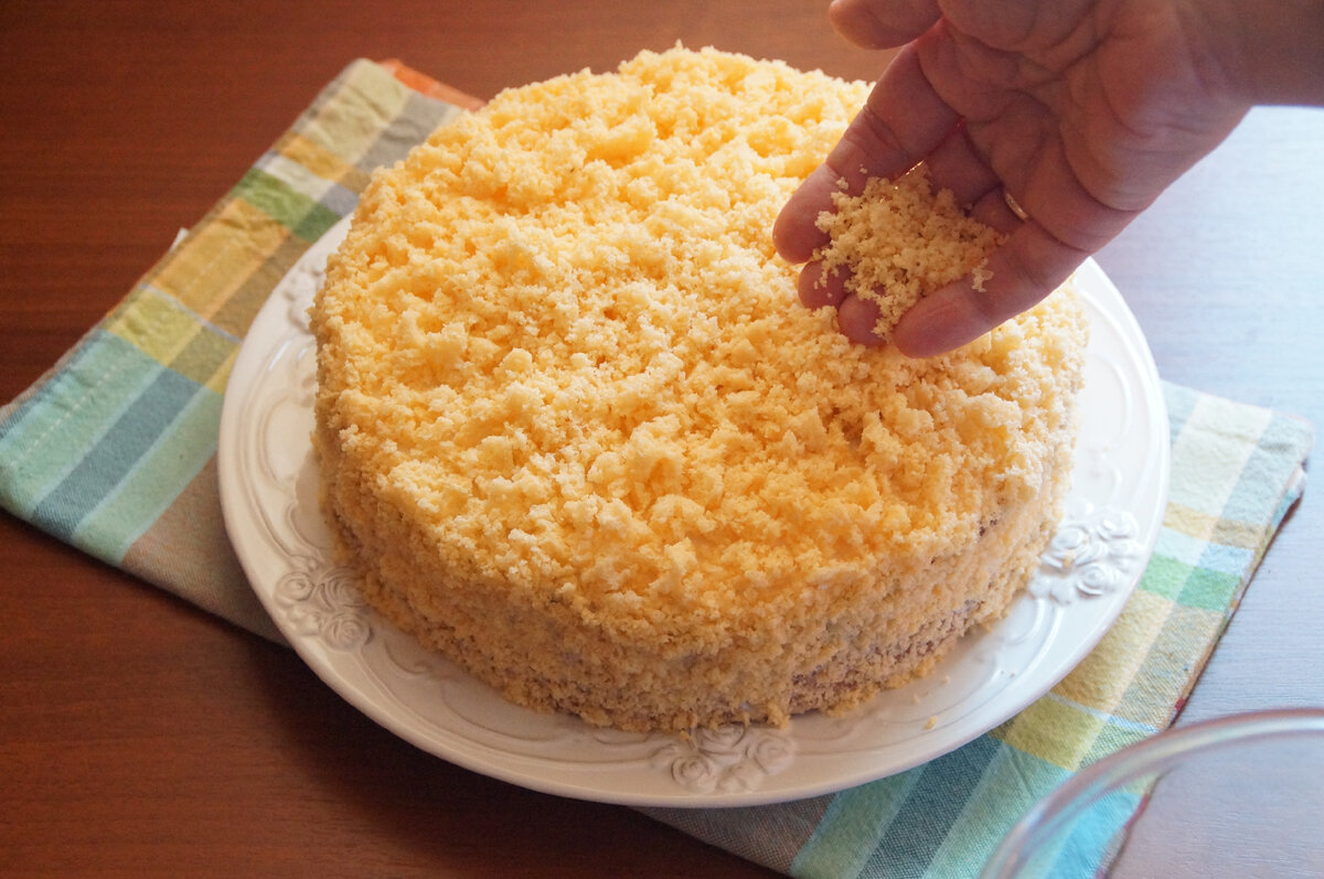 Назва “Мімоза” завжди асоціюється з салатом, і навіть я спочатку подумала, що це черговий салат шарами у вигляді торта. У цьому торті мене заінтригувала простота приготування.