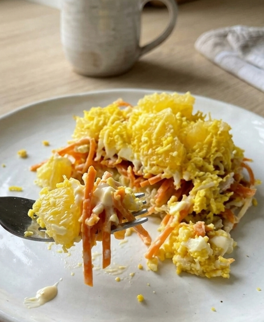 1. Відварні яйця натираю на великій терці і кладу в салатник.