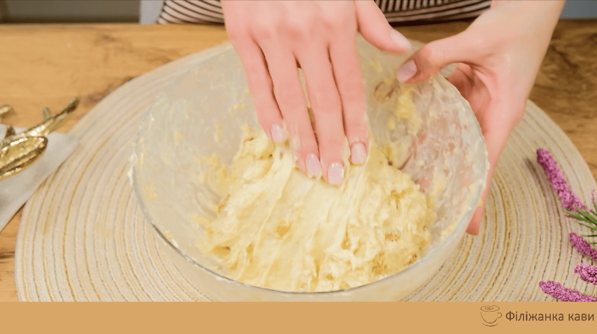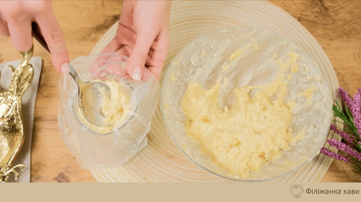 Просійте через сито 300 гр борошна і 6 гр розпушувача.