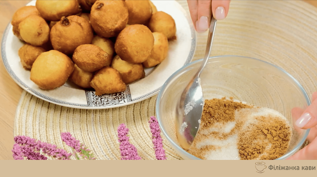 Змішайте 2 столові ложки цукру і 1 столову ложку кориці.