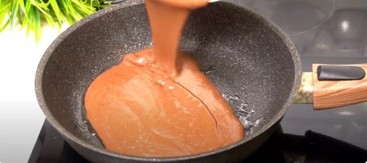 - Сковороду ставимо на вогонь, змащуємо олією і виливаємо тісто.