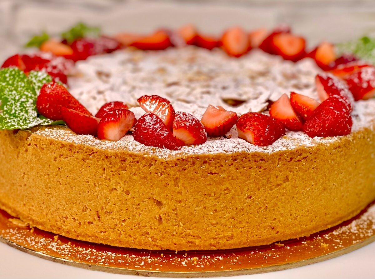 Охололий пиріг посипаємо цукровою пудрою прикрашаємо полуницею і кличемо всіх до столу. Смачного, готуйте і їжте із задоволенням.