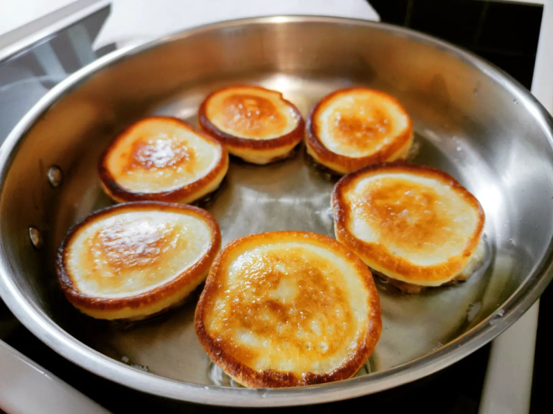 Смажимо на середньому вогні. Як тільки на поверхні з’являться перші бульбашки – настав час перевертати.